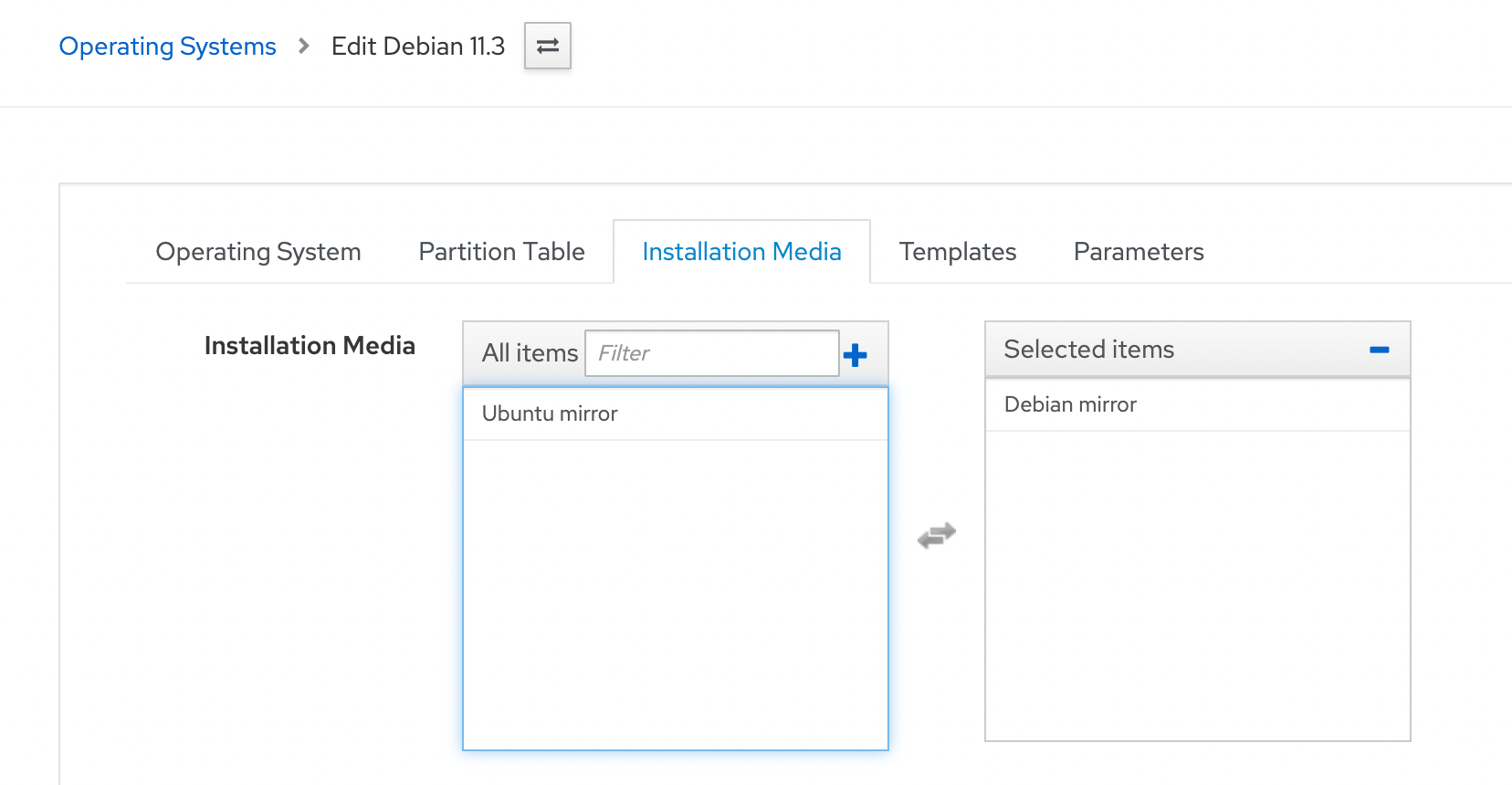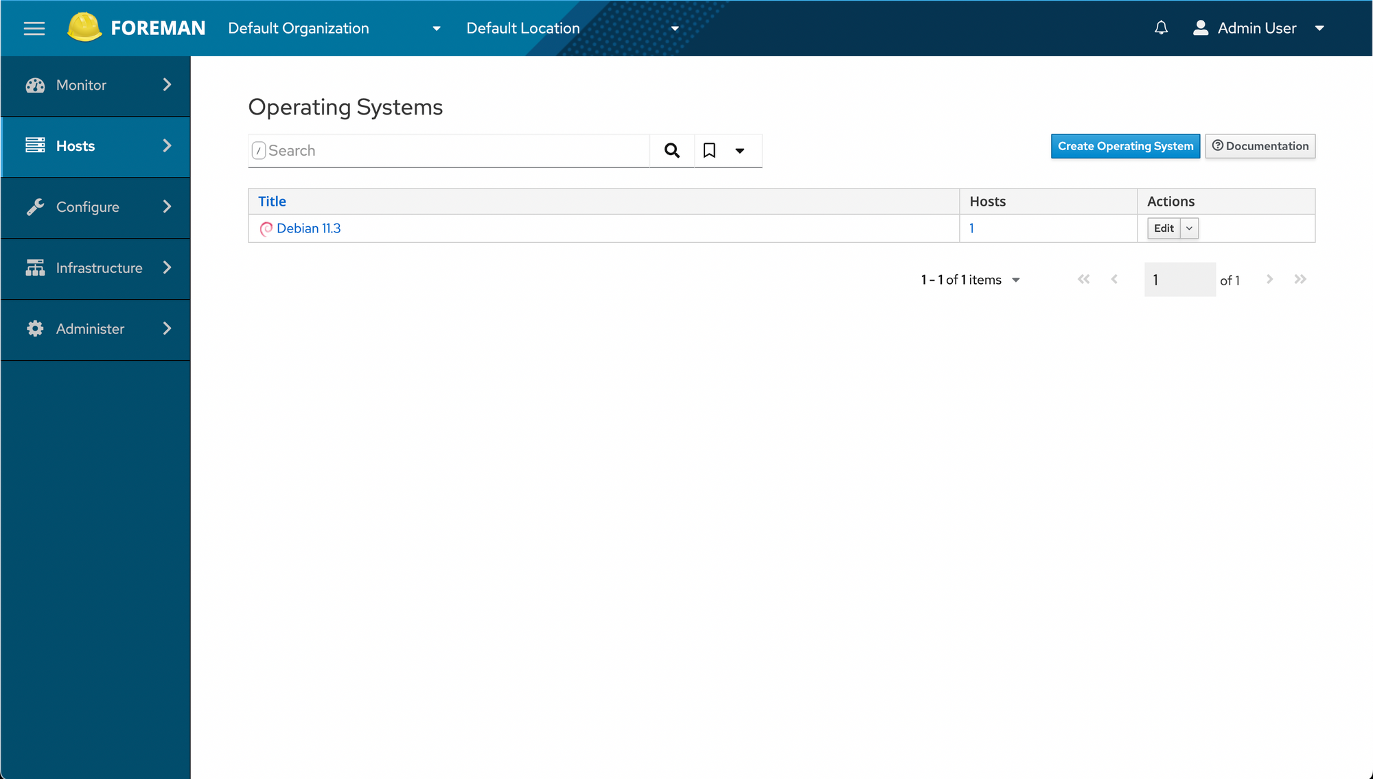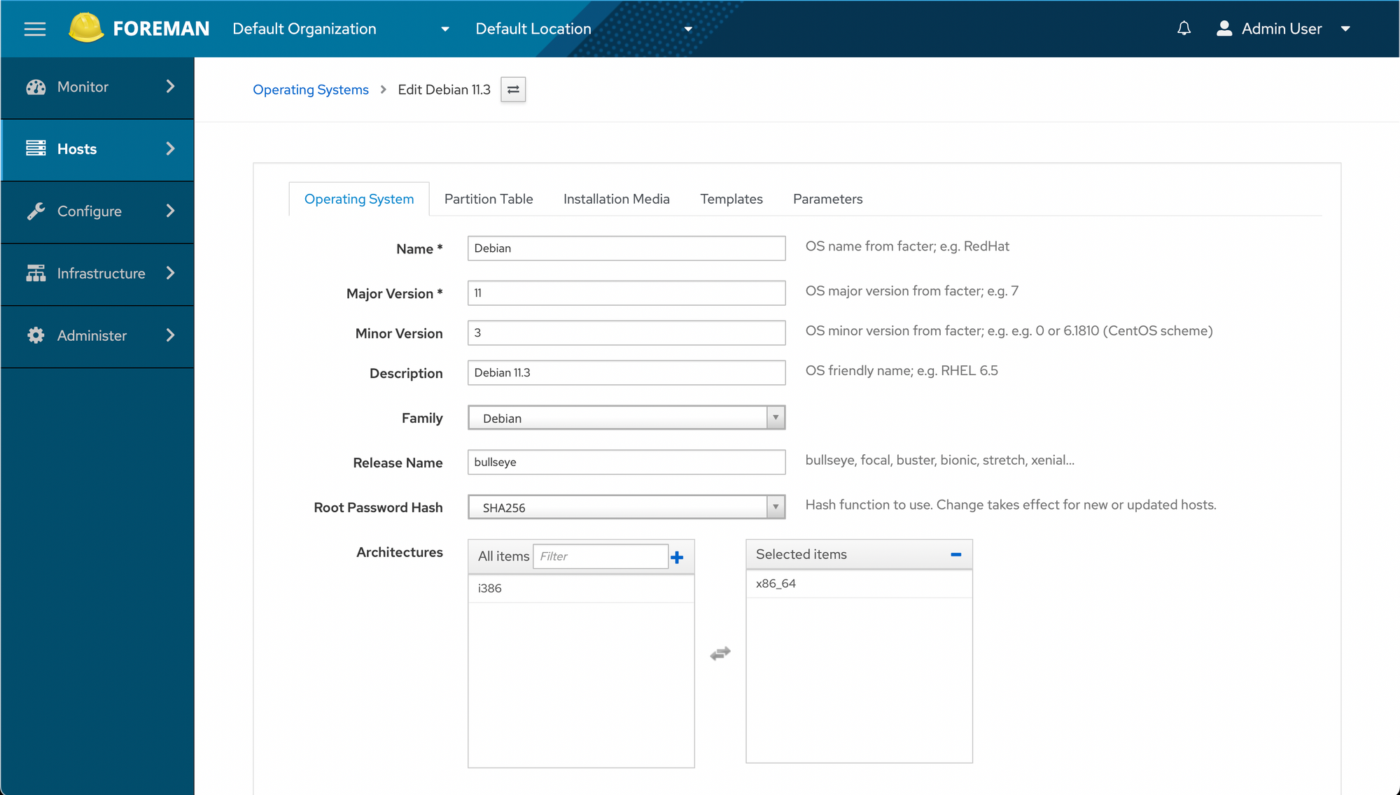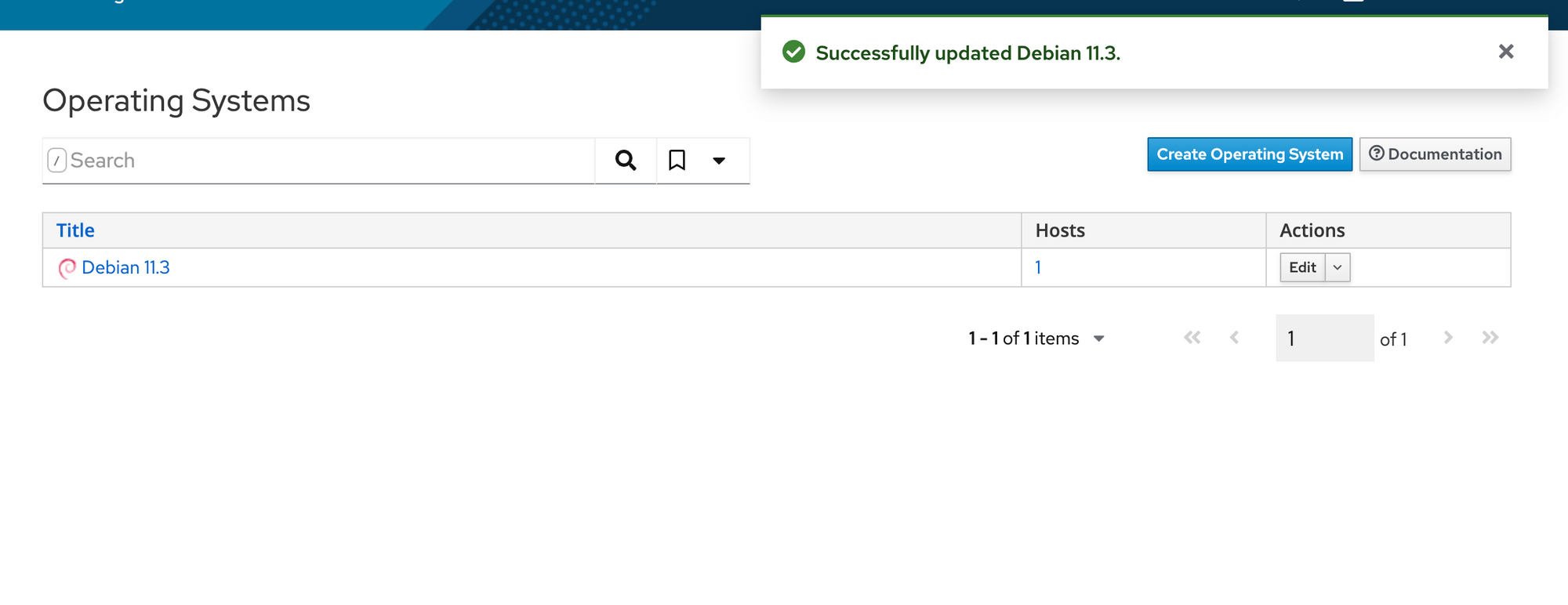 Once again, a new dropdown appears in our Operating Systems -> Debian 11.3 -> Templates tab... and we select the new Provisioning template.