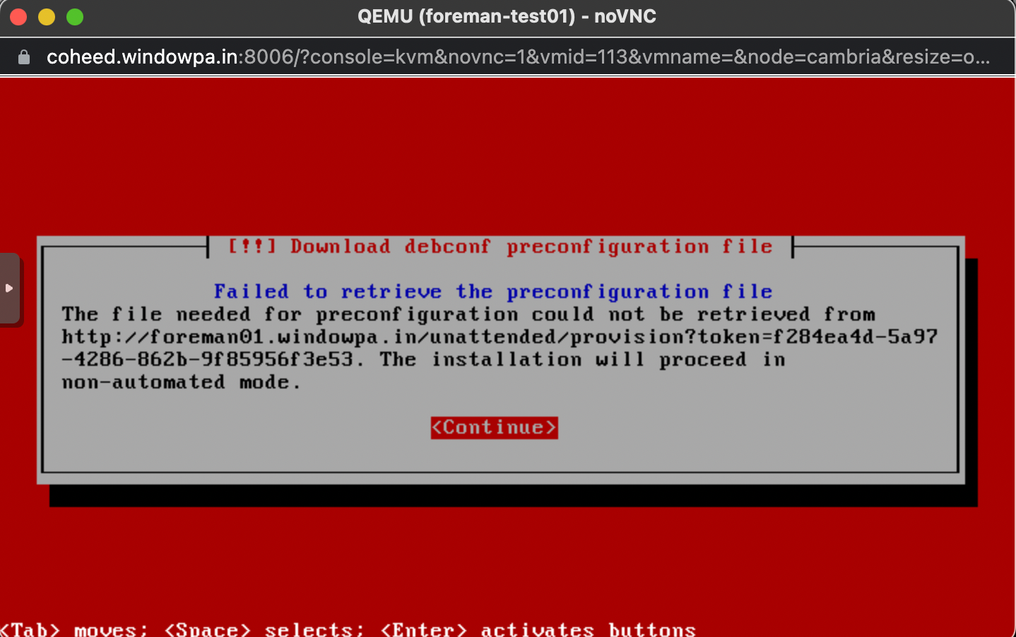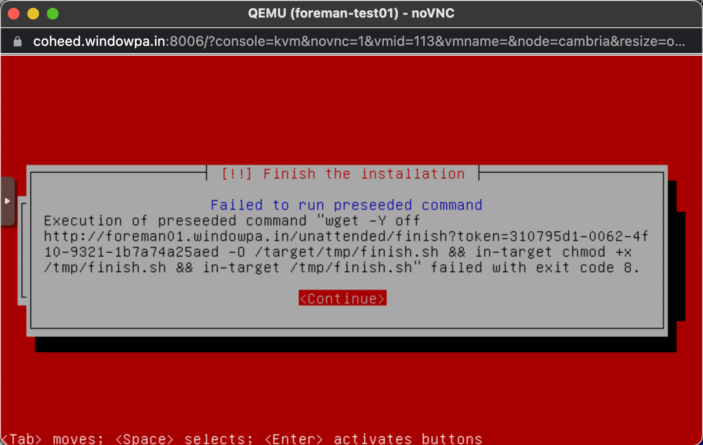 Drat, we got so far. Nevertheless, the machine works after hitting Continue.