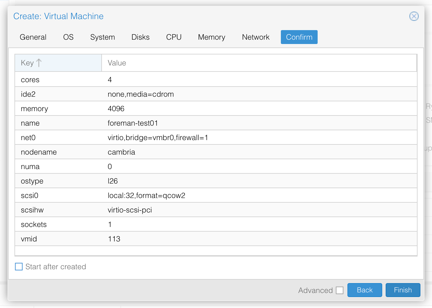 Skipping through the Network tab, we confirm the VM looks good, but don't start it yet.