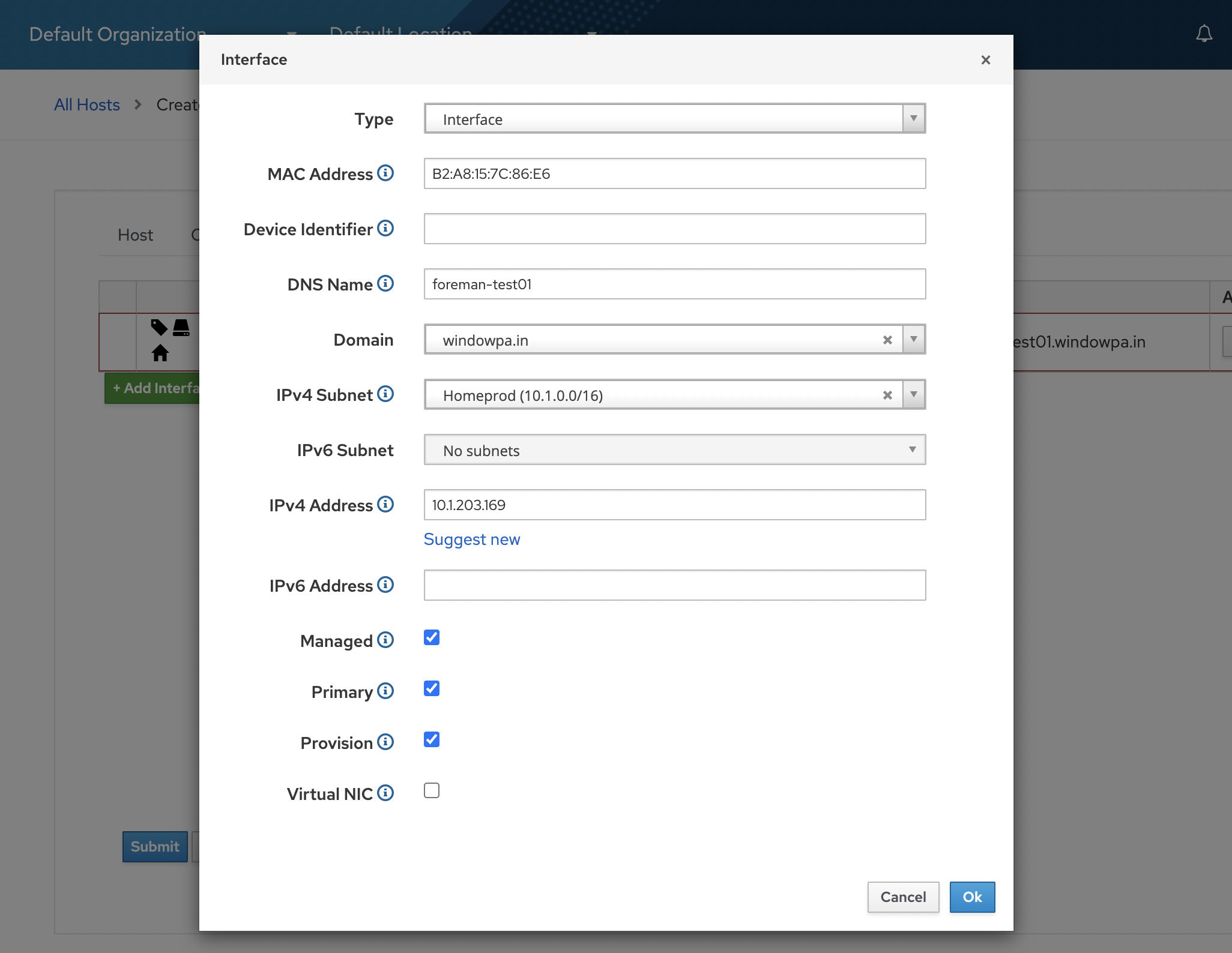 Foreman begins creating the DHCP settings for our new machine.