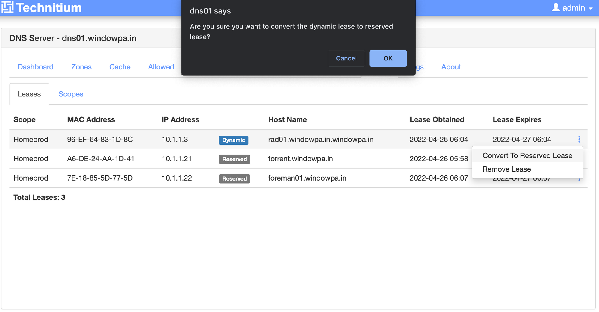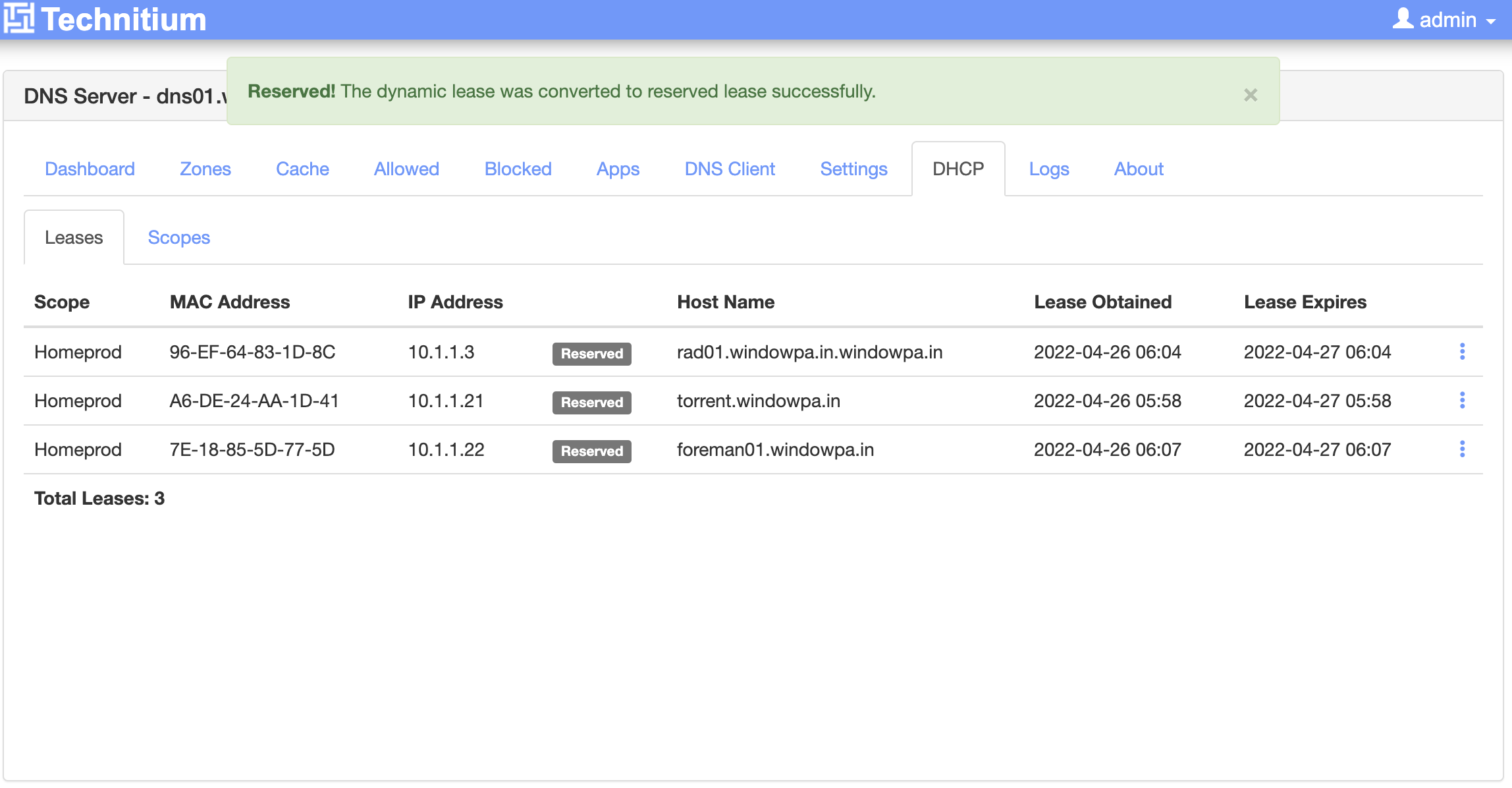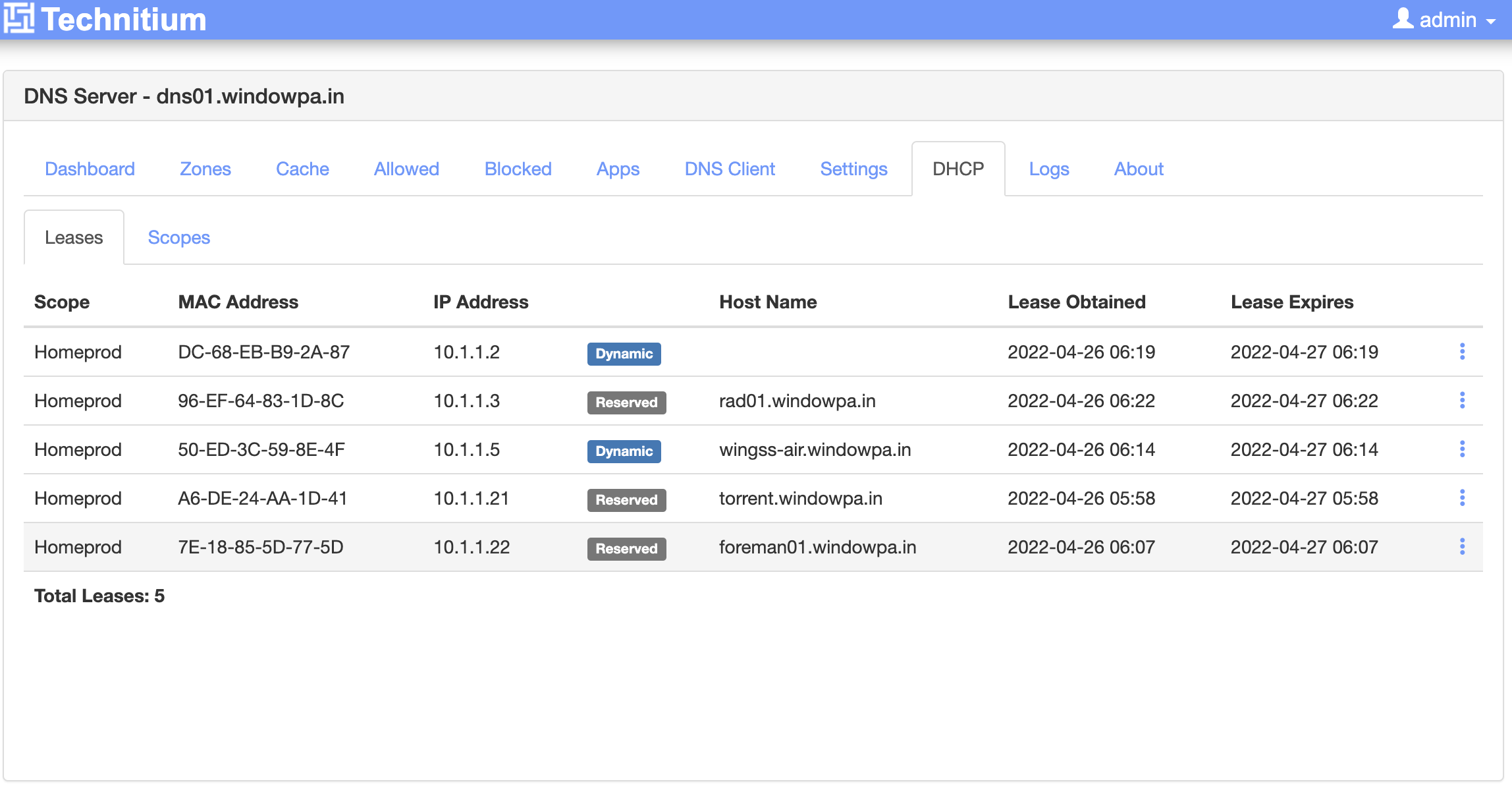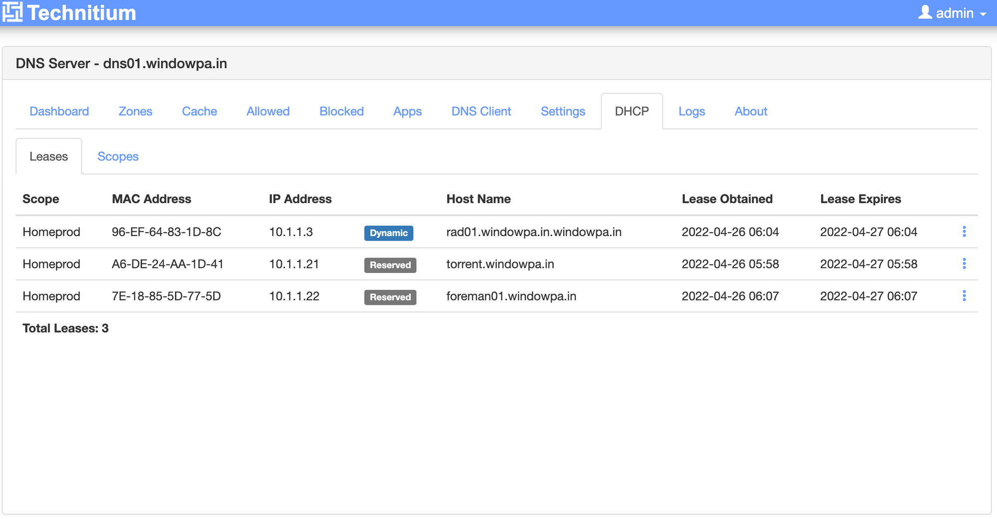 - Technitium does a much better job of showing DHCP leases.