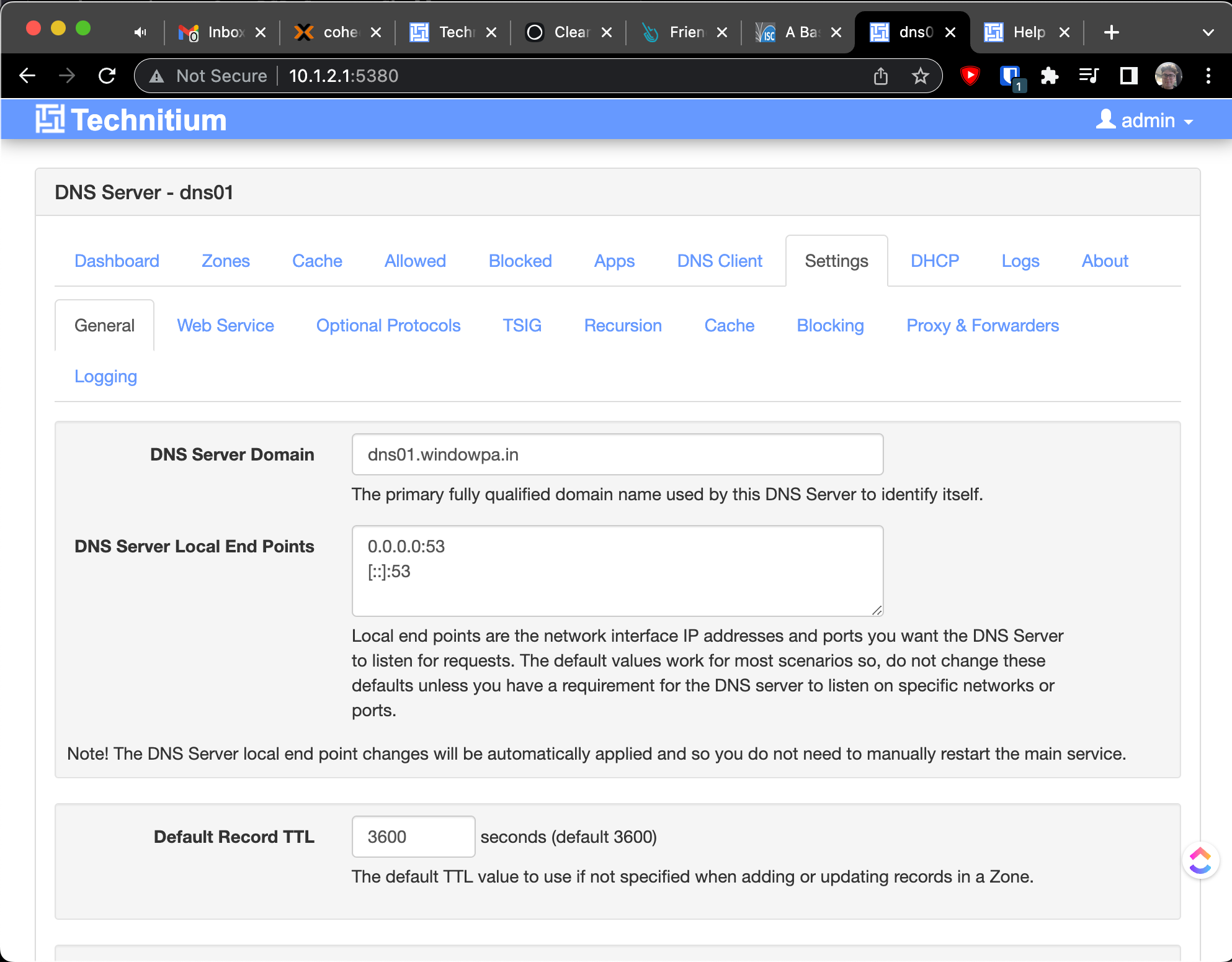 Open http://dns01:5380/ to access the web console.