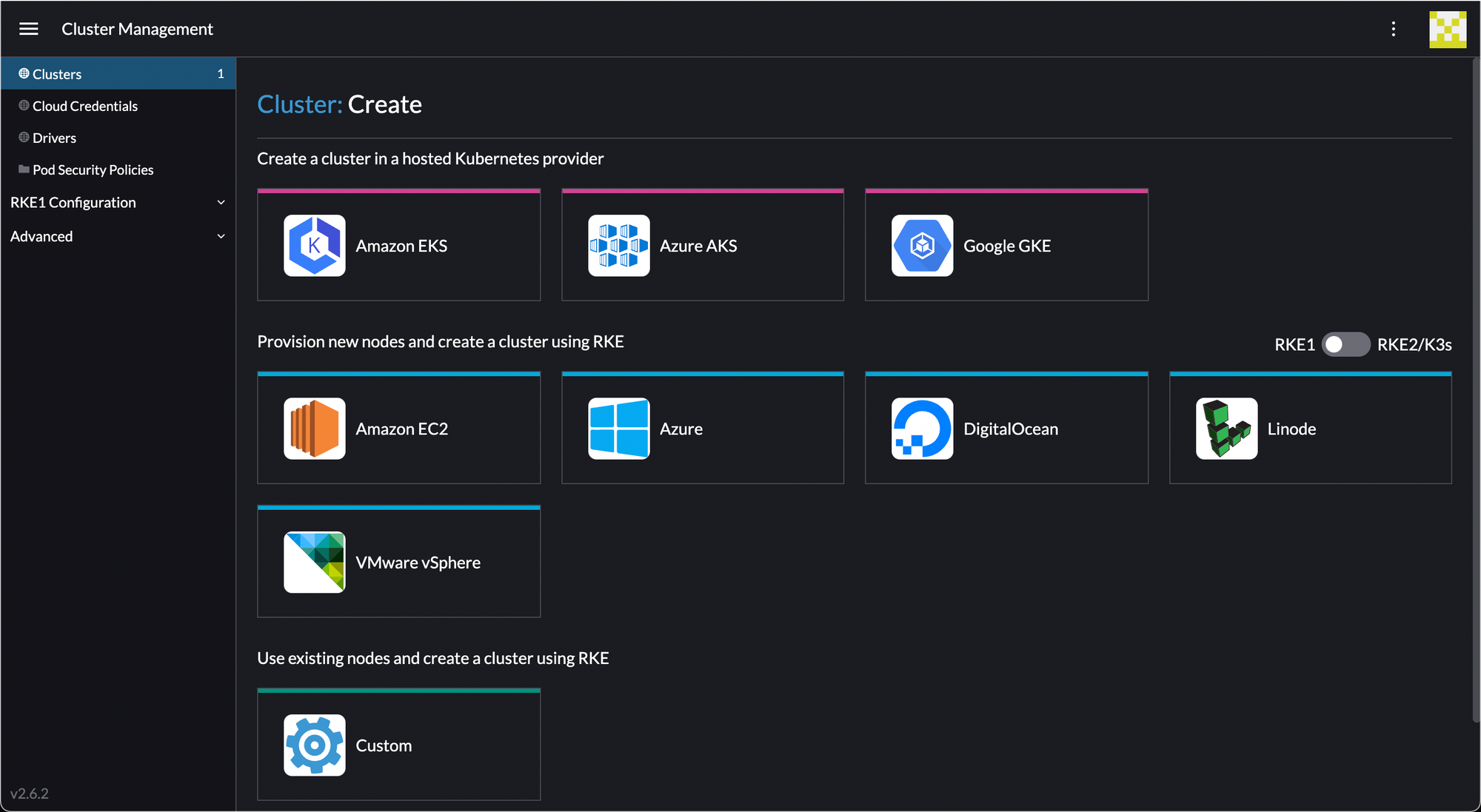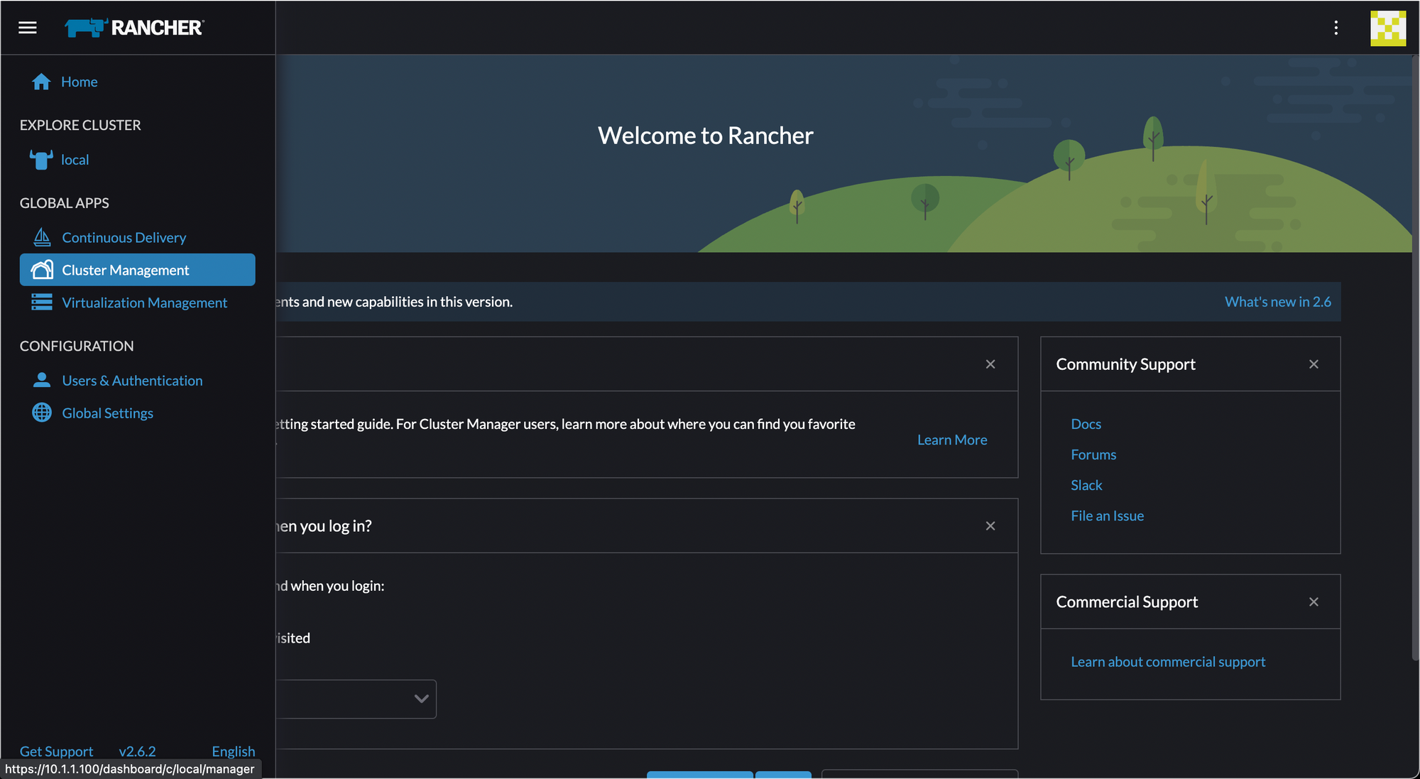 Go to Cluster Management, and we'll create our first cluster.